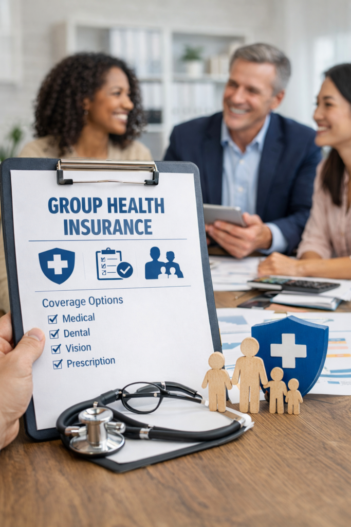 Group Health is a cost-effective way for employers to provide comprehensive health coverage, including medical, dental, vision, and prescription benefits, under one policy. By offering a structured group health insurance plan, businesses can reduce overall healthcare expenses, gain access to stronger provider networks, and improve employee retention. In today’s competitive market, providing affordable group health insurance benefits is not just an added perk—it’s a strategic advantage that strengthens your company’s reputation, supports workforce wellness, and ensures long-term business stability.