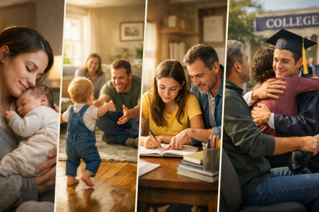 Life moves quietly and quickly at the same time. One minute you’re rocking a newborn to sleep, feeling their tiny fingers wrap around yours and wondering how your heart suddenly lives outside your body. Then you’re watching them take their first steps across the living room floor, cheering them on as they wobble toward you. Before you know it, you’re sitting at the kitchen table helping with homework, talking about big dreams, guiding them through teenage years, teaching them to drive, and planning for college.