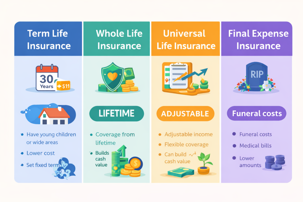 There are different types of life insurance, and each one is designed to fit different stages of life and different goals. Term life insurance provides affordable coverage for a specific number of years — often during the time your family depends on your income the most. It’s a practical, budget-friendly way to ensure that if something happens during those critical years, your loved ones are financially secure.